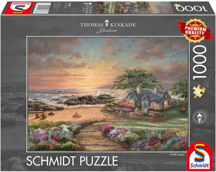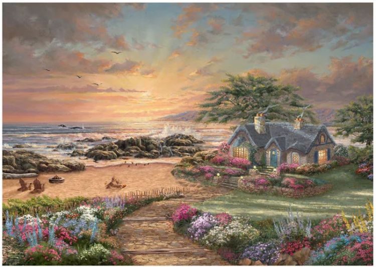 Puzzle Schmidt: Thomas Kinkade - Casuta pe malul marii- contine 1000 piese de puzzle.