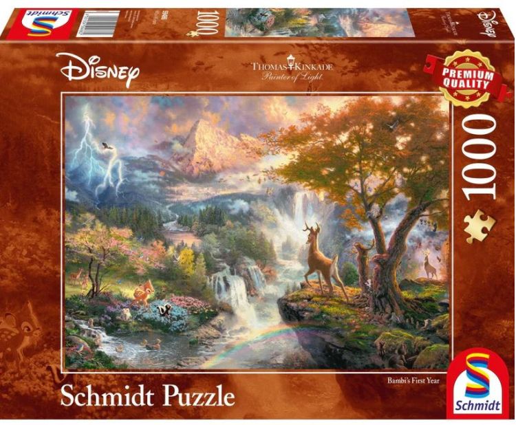 Puzzle Schmidt: Thomas Kinkade - Disney- Bambi contine 1000 de piese de puzzle. Este o carte scrisa de Felix Salten, dupa care s-a realizat filmul de animatie din 1942 al lui Disney, intitulat Bambi. Povestirea urmareste viata lui Bambi, un cerb din padure. Retraiti momentele copilariei cu ajutorul acestui puzzle minunat!
