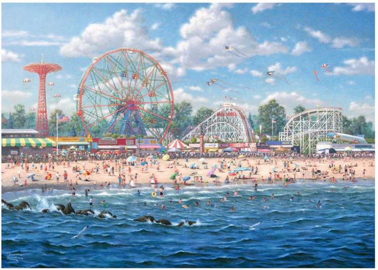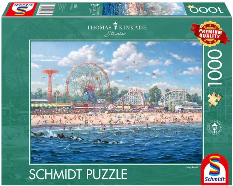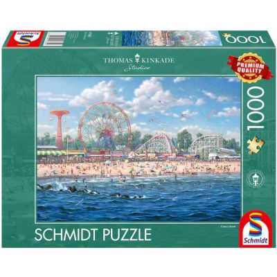 Puzzle Schmidt: Thomas Kinkade - Insula Coney, 1000 piese - in imaginea afisata prinde viata o lucrare a celebrului pictor american, cartierul de divertisment din New York, care atrage multimi.