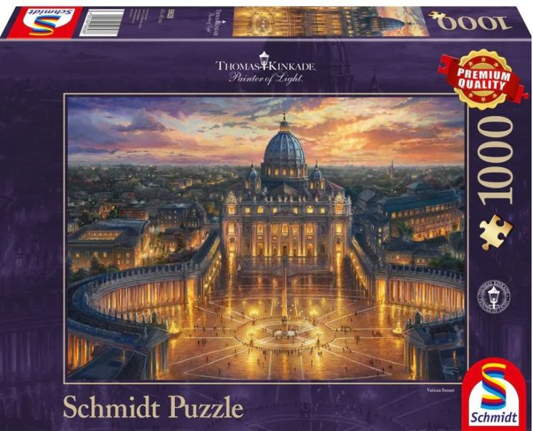 Puzzle Schmidt: Thomas Kinkade- Vaticanul, contine 1000 de piese de puzzle. A fost creata la 11 februarie 1929, ca urmare a Conventiei de la Lateran, ca succesor legal al statului papal. Scopul existentei sale este de a oferi Scaunului Apostolic, ca institutie suprema a Bisericii Catolice. Descopera frumusetea Vaticanului cu ajutorul acestui puzzle minunat, vizitandu-l seara tarziu, cand acesta este iluminat artificial!