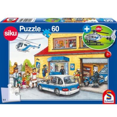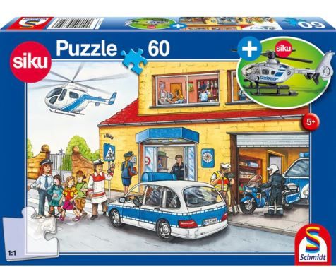 Puzzle Schmidt: Elicopter de politie contine 60 piese de puzzle + Cadou un elicopter de politie SIKU. Elicoptertul de politie asigura siguranta cetatenilor si survoleaza in zone cu pericol pentru acestia. Ei sunt eroii nostri!