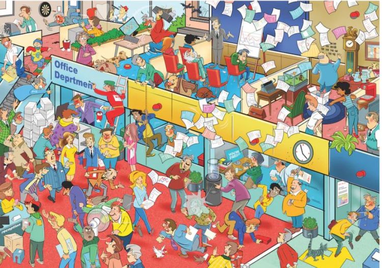 Puzzle Cauta si Gaseste - La birou, ofera o scena dintr-un birou aglomerat, aceasta fiind plin de haos! Asamblati-l sau transformati-l intr-o aventura de familie - in orice caz, promite o multime de distractie!