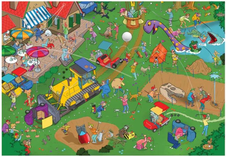 Puzzle Cauta si Gaseste - La golf ofera o scena de pe un teren de golf aglomerat, aceasta fiind plina de haos! Distractiv, haotic, salbatic si nebunatic, acest puzzle este exact genul de jucarie cu care mintile tinere se vor bucura sa-si petreaca timpul.