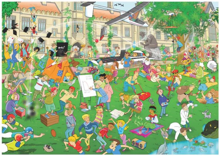 Puzzle Cauta si Gaseste - La scoala ofera o scena din curtea unei scoli aglomerate, aceasta fiind plina de haos! Asamblati-l sau transformati-l intr-o aventura de familie - in orice caz, promite o multime de distractie!