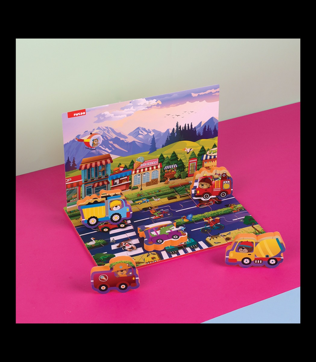 PUZZLE DIN SPUMA EVA MASINI SI SEMNE DE CIRCULATIE 17 PIESE PUEDO