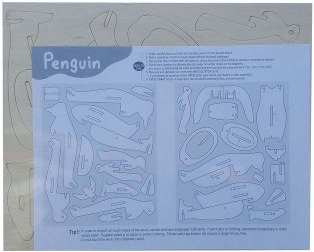 Puzzle lemn 3D - Pinguini de colorat Amos