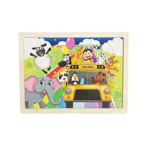 Puzzle lemn imagini color-24 piese Colorarte, Zoo Bus, animale