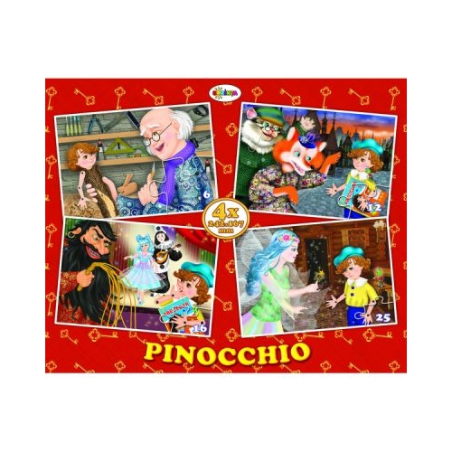 Asambleaza puzzle-ul "Pinocchio" si descopera in cele 4 imagini povestea, iar pe verso vei gasi un fragment din poveste.
