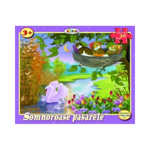 Asamblati puzzle-ul si cititi poezia "Somnoroase pasarele" de Mihai Eminescu de pe spatele cutiei.