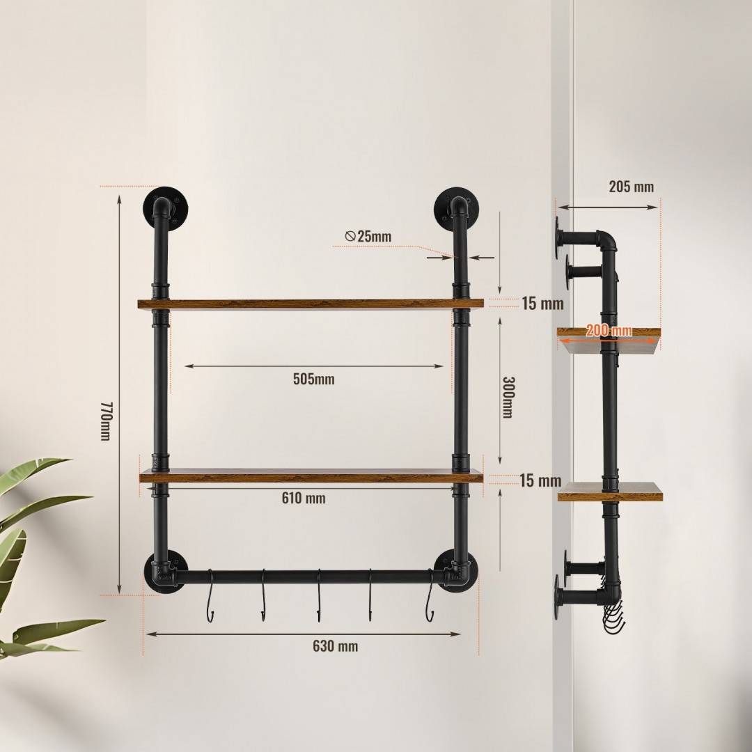 Raft metalic cu 2 x polite incluse din lemn, Vivatechnix Industrial, 630 x 205 x 770 mm