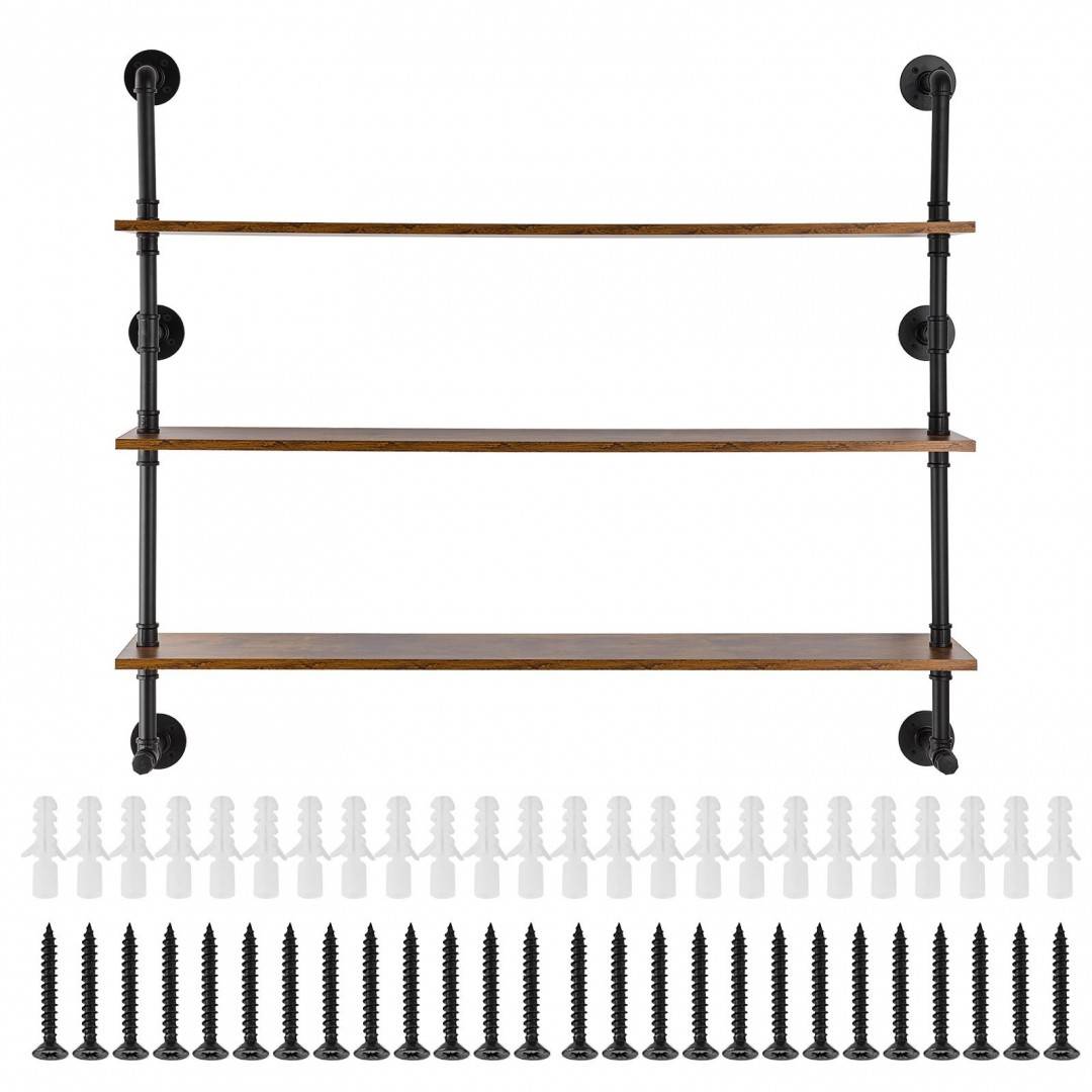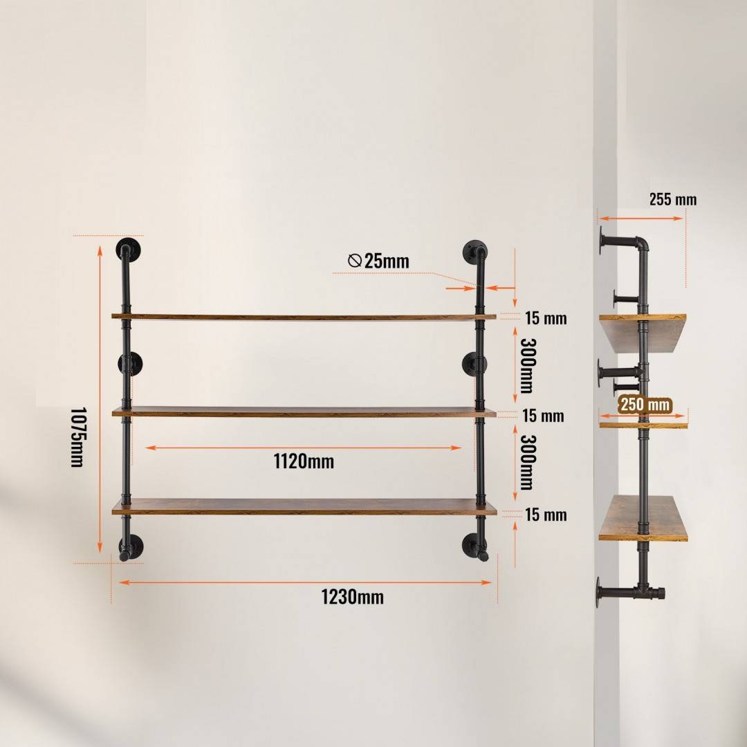 Raft metalic cu 3 x polite incluse din lemn, Vivatechnix Industrial, 1230 x 255 x 1075 mm