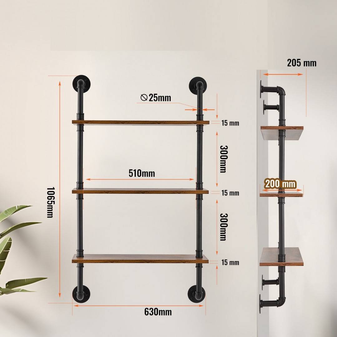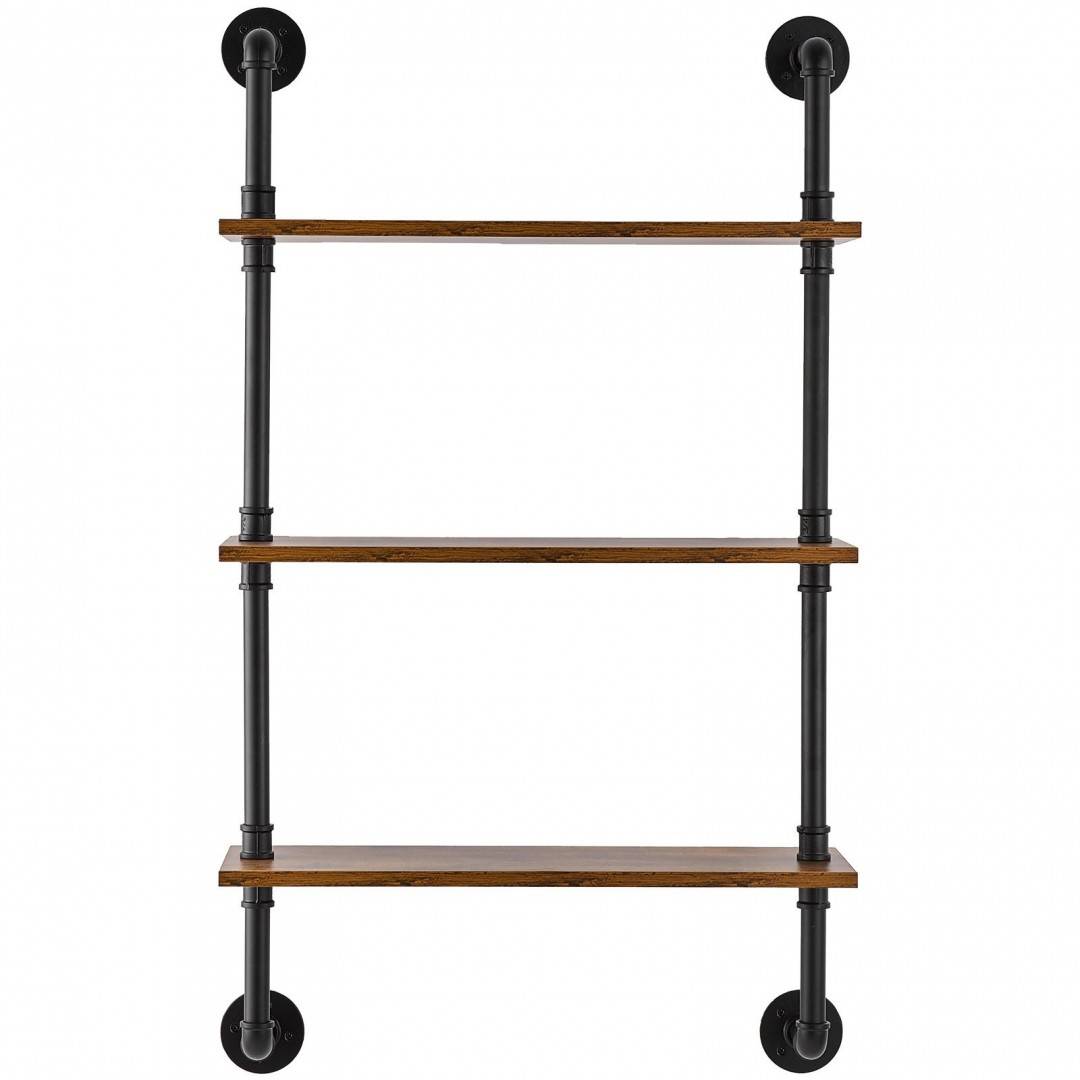 Raft metalic cu 3 x polite incluse din lemn, Vivatechnix Industrial, 630 x 205 x 1065 mm