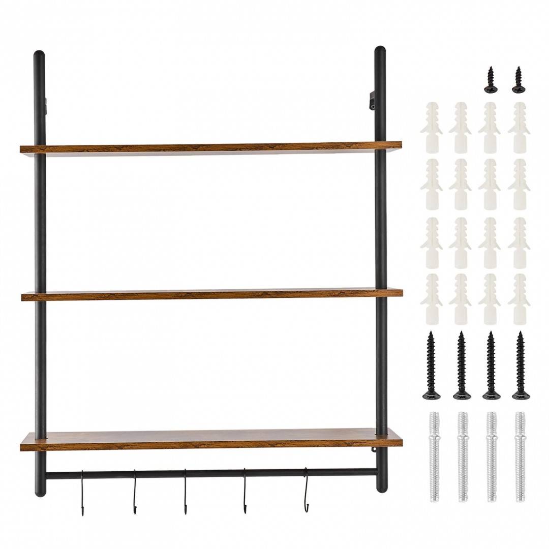 Raft metalic cu 3 x polite incluse din lemn, Vivatechnix Industrial, 800 x 245 x 965 mm