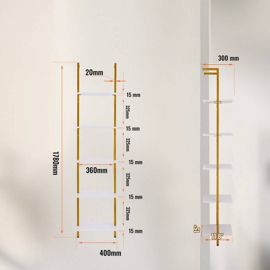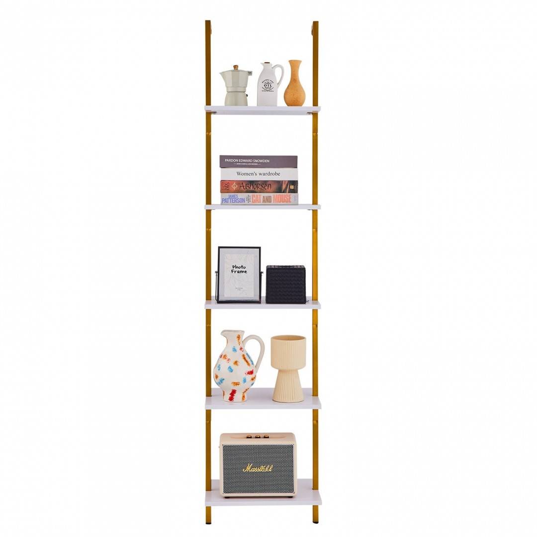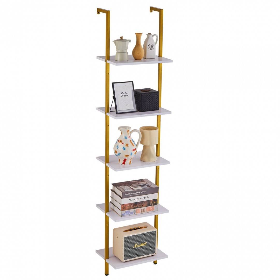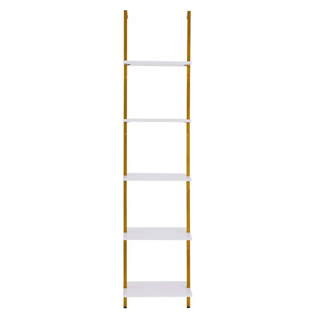 Raft metalic cu 5 x polite incluse din lemn, profil patrat 20x20 mm, Vivatechnix Industrial, 400x300x1780 mm, Auriu/Alb