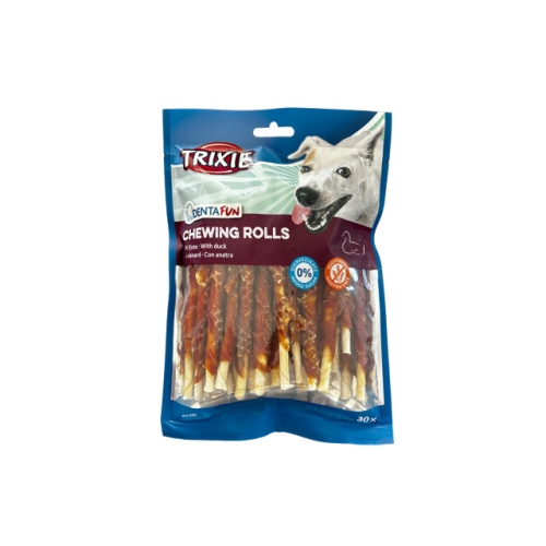 Multi caini se bucura sa mestece neincetat, din acest motiv TRIXIE a dedicat o linie de mestecat. Linia Denta Fun ofera articole distractive cu efecte imbunatatite asupra sanatatii dintilor. Aceste gustari sunt realizate din piele de vaca, faciliteaza indepartarea tatrului de pe dinti siprevine formarea acestora.