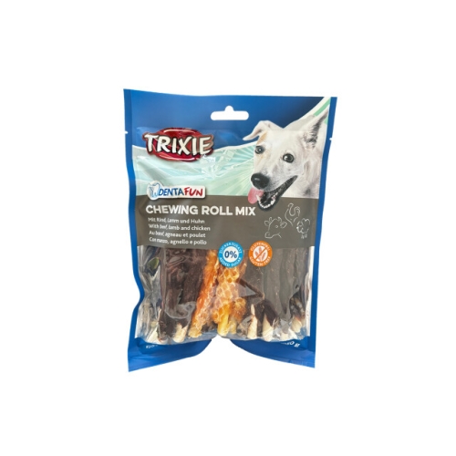 Multi caini se bucura sa mestece neincetat, din acest motiv TRIXIE a dedicat o linie de mestecat. Linia Denta Fun ofera articole distractive cu efecte imbunatatite asupra sanatatii dintilor. Aceste gustari sunt realizate din piele de vaca, faciliteaza indepartarea tatrului de pe dinti si previne formarea acestora.