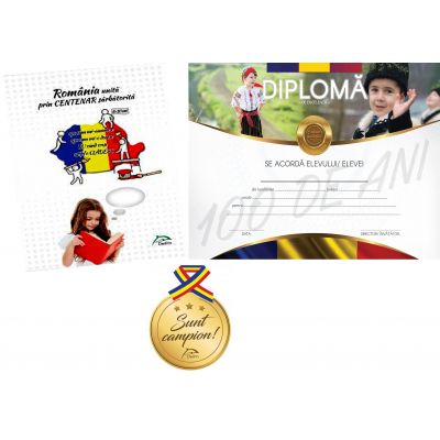 Romania unita prin CENTENAR sarbatorita - 6-10 ani - Contine diploma si medalie cadou