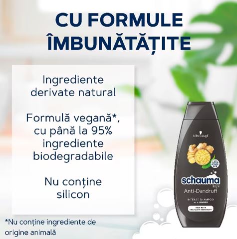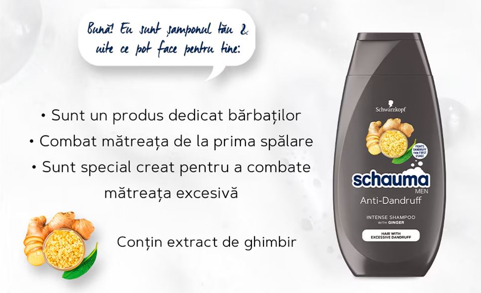 Buna! Eu sunt SAMPONUL TAU SCHAUMA MEN ANTIMTREATA INTENSE & uite ce pot face pentru tine:
