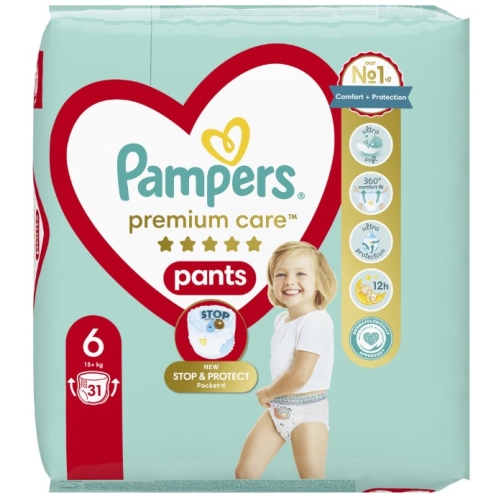 Ofera-i bebelusului tau 100% confort si protectie de la Pampers cu scutecele-chilotel Pampers Premium Care Pants! Acum cu un Buzunar Stop & Protect unic pentru a ajuta la prevenirea scurgerilor in partea din spate pentru pana la 12 ore de protectie completa impotriva scurgerilor.