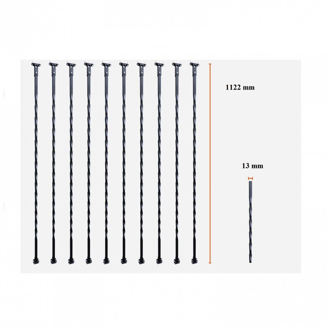 Set 10 stalpi balustrada, Vivatechnix 13 x 13 x 1122mm, Negru mat, accesorii prindere