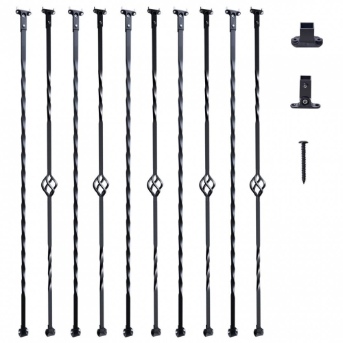 Set 10 stalpi balustrade cu cos si spiralate, 13 x 13 x 1122mm, Negru mat, accesorii prindere