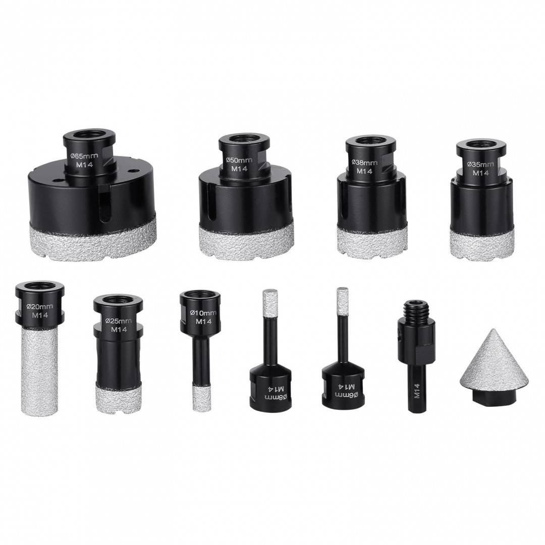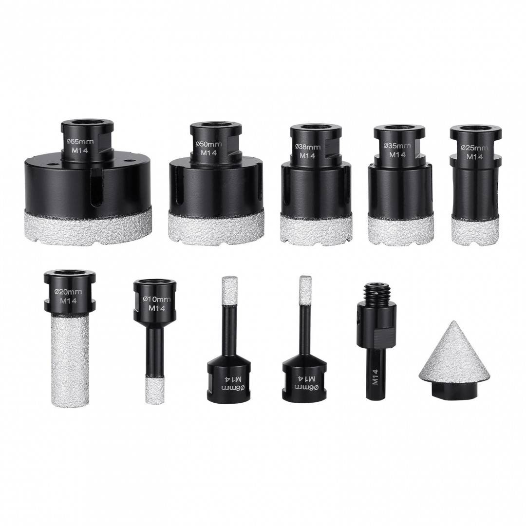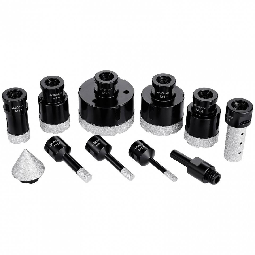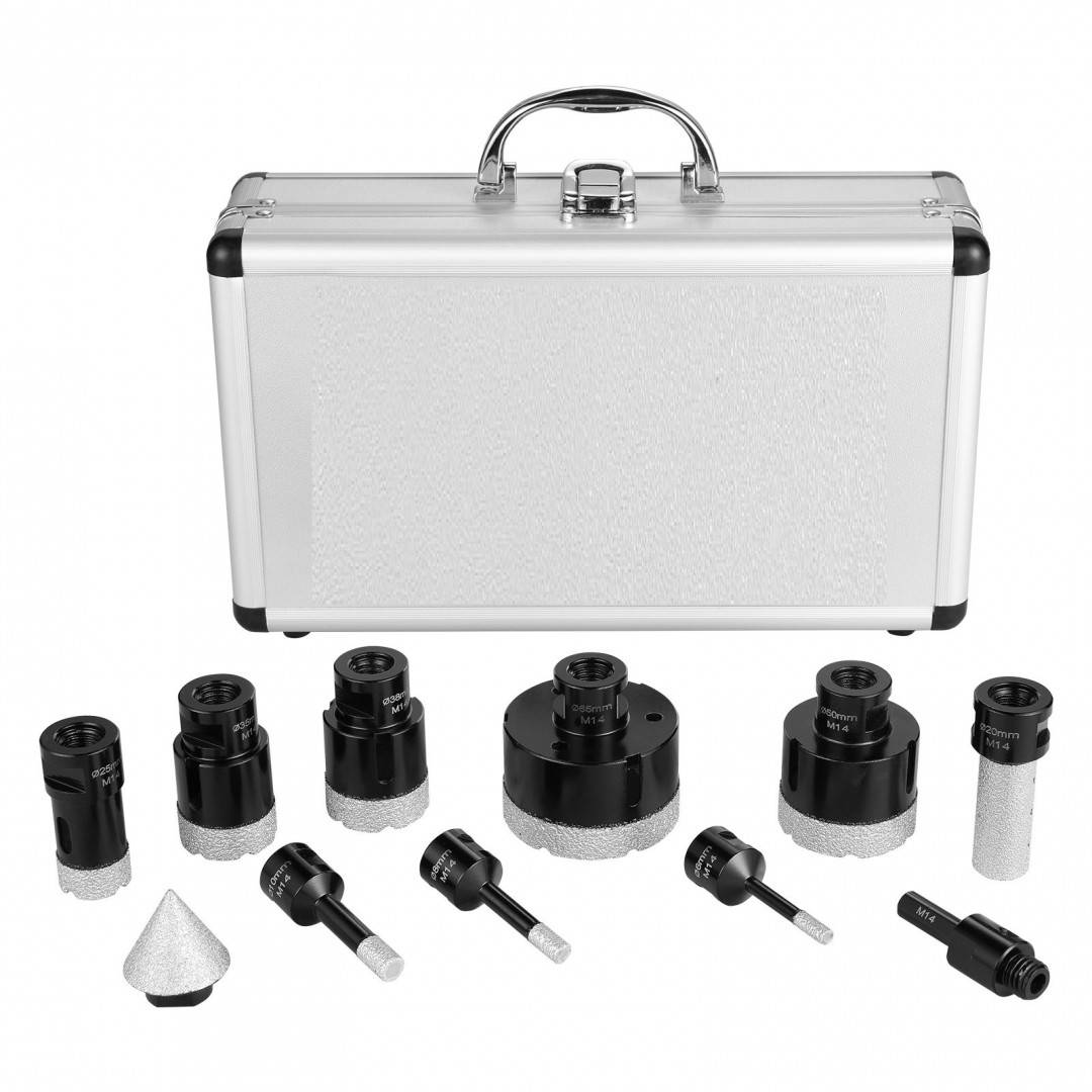 Set 11 carote diamantate pentru gresie, marmura, 6/8/10/25/35/38/50/65 mm, umed sau uscat, cutie depozitare