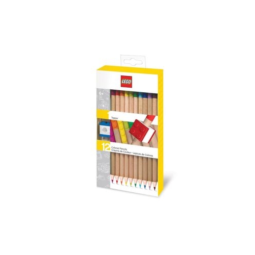 Creioane colorate LEGO de diferite culori. Pachetul include 12 creioane si 2 suporturi colorate de care poti prinde un creion sau o minifigurina.