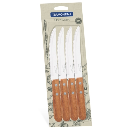 Cu manere din lemn natural atasate cu nituri din aluminiu, vesela Dynamic adauga o nota rustica meselor dumneavoastra.