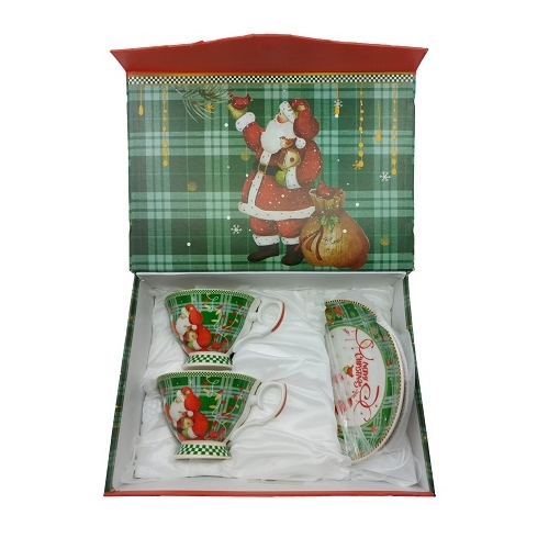 Set 2 cesti cu farfurioara ceramica in cutie model Mos Craciun, Xmas, Prosper