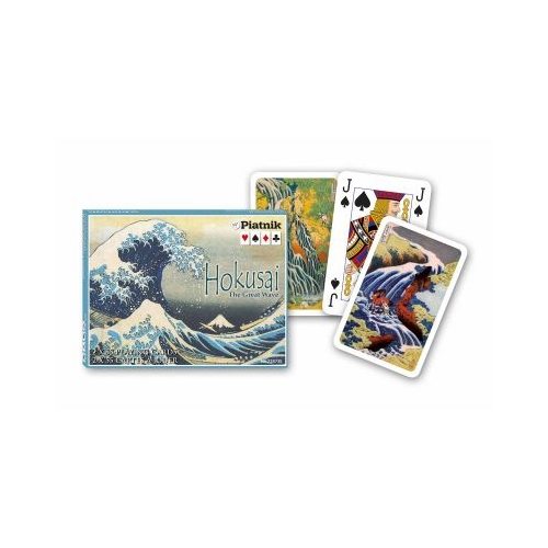 Carti de joc de lux care au ca tema operele renumitului artist japonez Katsushika Hokusai 1760-1849 . Cea mai cunoscuta este stampa Marele val de la Kanagawa . Cutia cu design si finisaj deosebit contine 2 pachete de carti de joc. Fiecare pachet de carti are 52 de carti cu figuri standard si 3 jokeri. Se poate juca orice joc cu carti Canasta Whist Bridge Poker etc. Cartile de joc sunt de calitate excelenta din carton plastifiat rezistent la uzura placut la atingere. Bridge Size Playing Cards 57 mm x 88. 8 mm . Produse de Piatnik la Viena. Un cadou deosebit