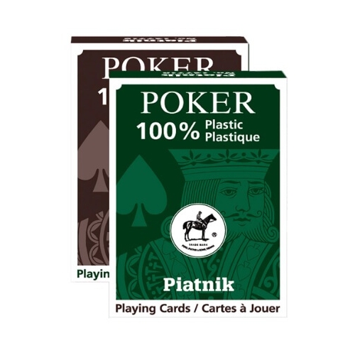 Carti de joc de calitate exceptionala fabricate de Piatnik in Austria utilizate in cazinouri si cluburi de poker. Sunt confectionate 100 din plastic special care rezista la indoire si la uzura. Spate cu model vede respectiv negru. Au index-uri normale astfel incat pe langa jocul de poker se poate juca confortabil orice alt joc de carti. Sunt proiectate sa fie folosite optim si de persoanele stangace sau ambidextre. Dimensiuni poker size 88mm x 63mm Piatnik celebra firma vieneza fondata in 1824 este cel mai mare producator de jocuri carti de joc seturi si accesorii de poker din Austria si unul din cei mai importanti pe plan mondial. Cu o experienta de peste 190 de ani Piatnik se remarca prin calitatea impecabila si eleganta produselor sale fiind un furnizor important al cazinourilor europene. Un cadou deosebit pentru pasionatii de Poker si alte jocuri cu carti.
