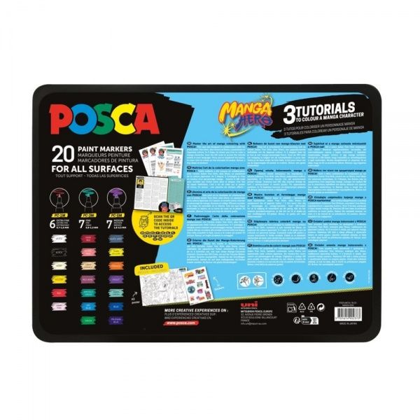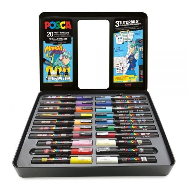 Set 20x Marker UNI Posca Manga Hero, cutie metalica (6x PC-1M, 7x PC-3M, 7x PC-5M)