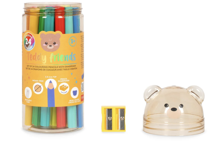 Dacă vrei să pictezi fără limite, îți dăm o mână de ajutor! Alege Setul de 24 de creioane colorate cu ascuțitoare - Teddy Friends de la Legami. 24 de creioane ursuleț de pluș pentru a completa fiecare model cu culori asortate și unice.
