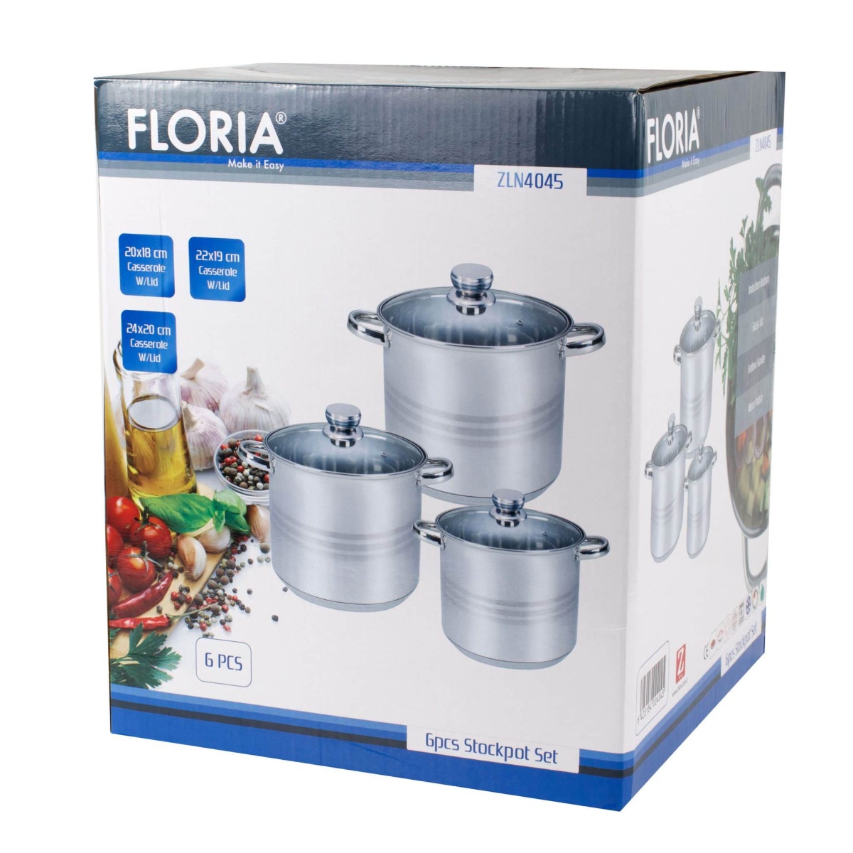 Set 3 oale cu capace inox, 5L / 6L /8L, Floria
