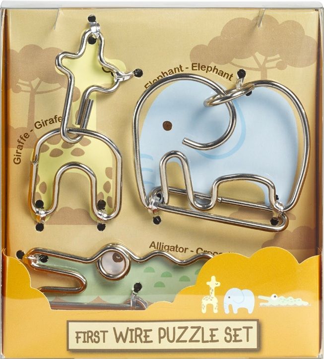 Setul de 3 puzzle-uri metalice: Animale salbatice. First Wire, iti testeaza indemanarea.