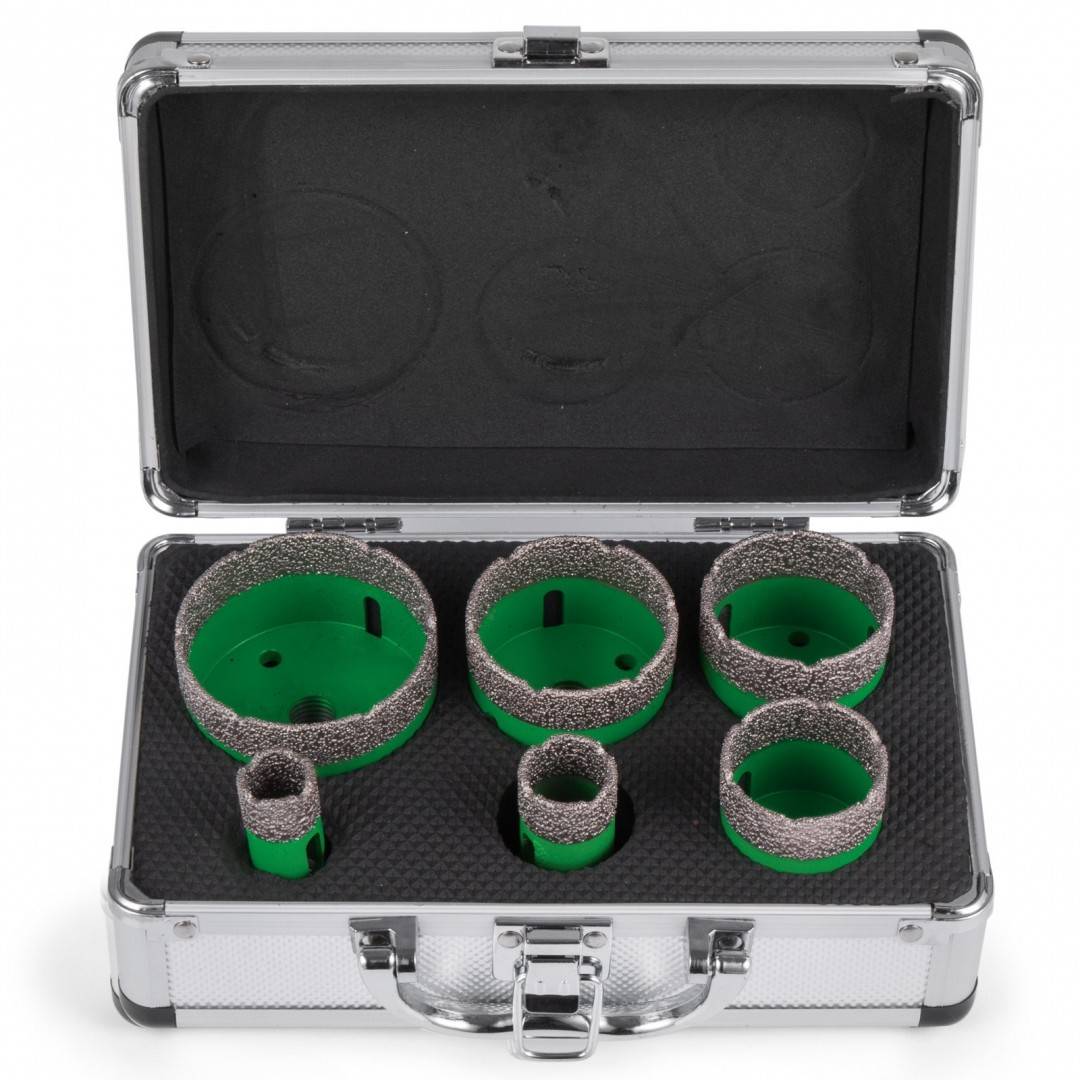 Set 6 carote diamantate pentru gresie, marmura, 20-68 mm, prindere M14, umed sau uscat, cutie depozitare