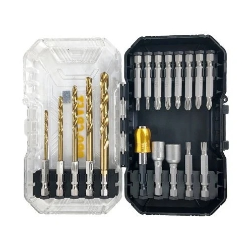 Acest set de 18 piese include o varietate de biti si burghie pentru metal, concepute pentru a oferi performante de top si durabilitate. Bitii de 50 mm acopera o gama larga de tipuri si dimensiuni, iar burghiele HSS sunt ideale pentru gaurirea precisa in metal. Setul include, de asemenea, chei tubulare si un suport magnetic pentru biti, asigurand o organizare eficienta si acces rapid la uneltele necesare.