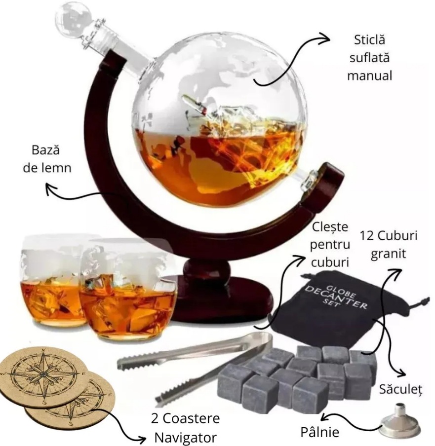 Acest Set cadou decantor Glob Pamantesc cu doua pahare Epique contine: