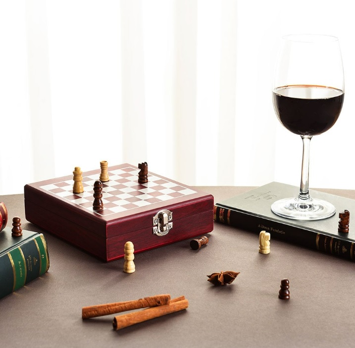 Cele doua se completeaza perfect. Deschide o sticla de vin, scoate piesele de sah si aventureaza-te intr-un noua partida de strategie, imbatata pe ici pe colo cu licoarea din pahar. Barbatii galanti si femeile sofisticate vor face asta cu gratie.