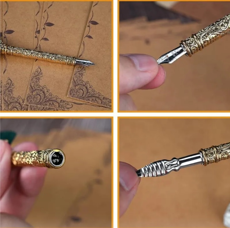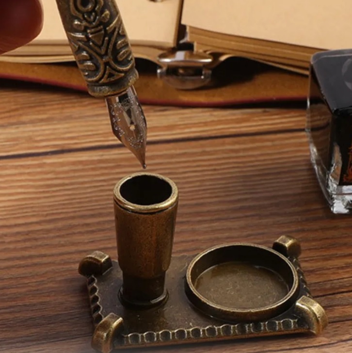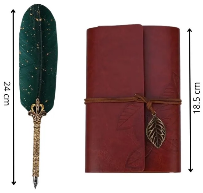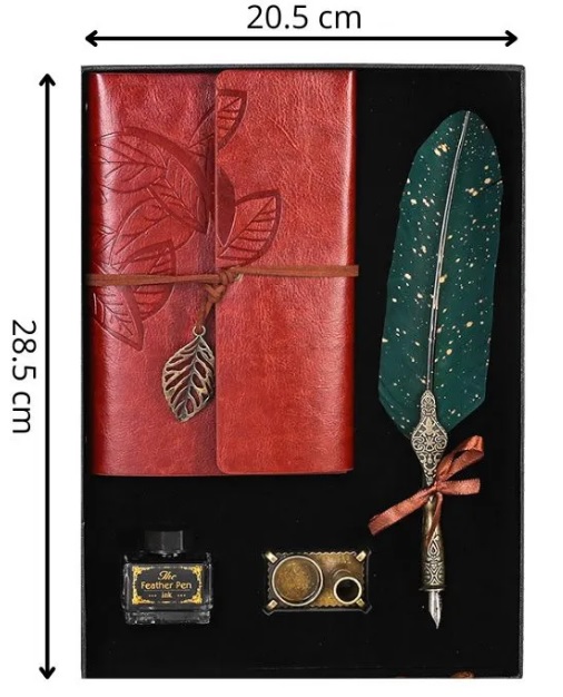 - Accesorii incluse: Suport pentru pana, sticla de cerneala, jurnal, pana