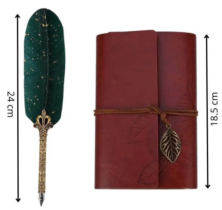 Acest set este ideal pentru scrierea jurnalelor, notitelor speciale, scrisorilor sau chiar pentru practicarea caligrafiei. Deschide jurnalul, inmoaie pana in cerneala si lasa creativitatea sa curga liber pe pagini.