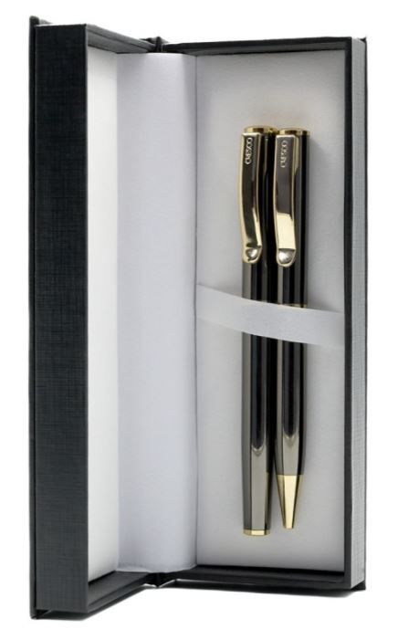 Set stilou+pix CRESCO CLASSIC 830019, CL-01, metalic, corp maro cu clips auriu, cutie 34
