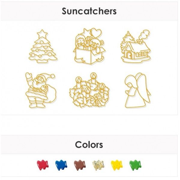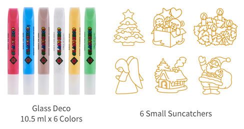 6 culori Glass Deco x 10, 5 ml si 6 sabloane SunDeco cu tematica de Craciun