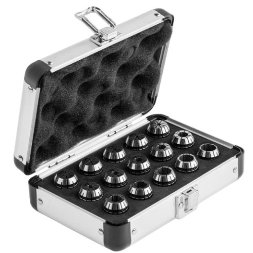 Setul de cleme ER20 este livrat într-o cutie de depozitare din aluminiu și conține un total de 15 bucși ER20.