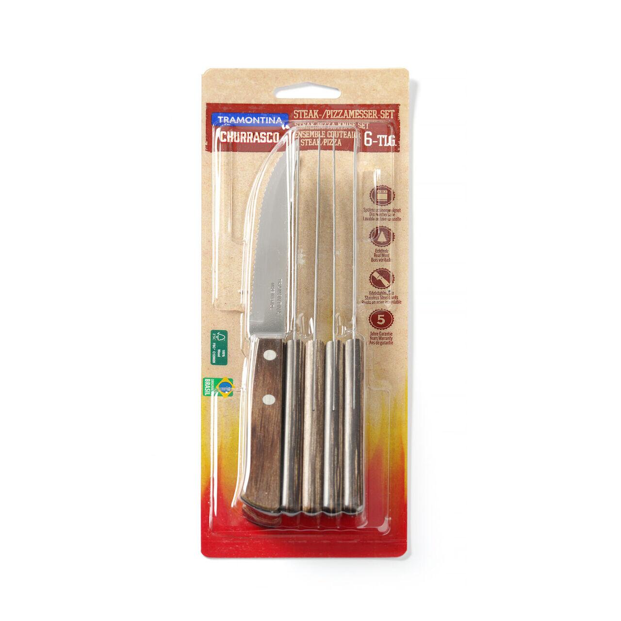 Set de cutite pentru friptura si pizza Churrasco, 6 bucati Hendi, Tramontina, Maro, (L)215 mm