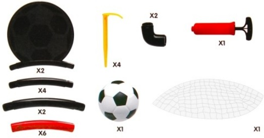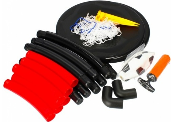 Setul include: un obiectiv pentru auto-asamblare cu goluri suplimentare, o minge, cuie și o pompă.