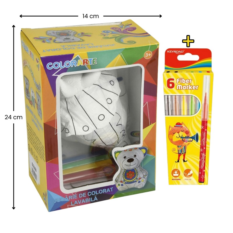 Set creativ care conține: Jucarie vatelina pentru colorat lavabila + Carioci Keyroad Washable, 6 culori.