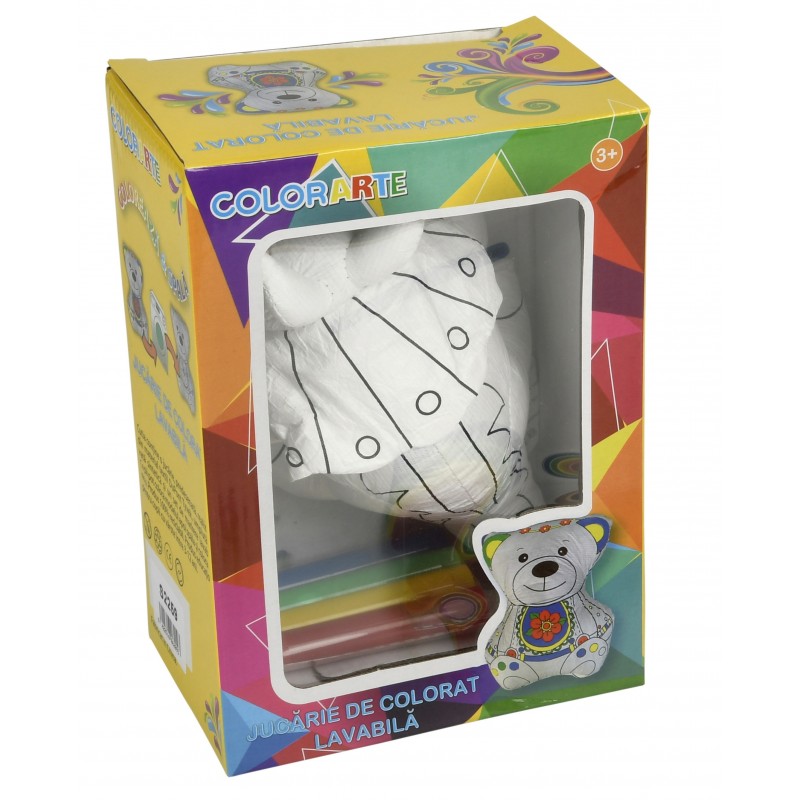 Jucăria, fabricată dintr-un material foarte rezistent (tywek) poate fi colorată cu markerele din set pe modelele imprimate, poate fi spălată în mașina de spălat