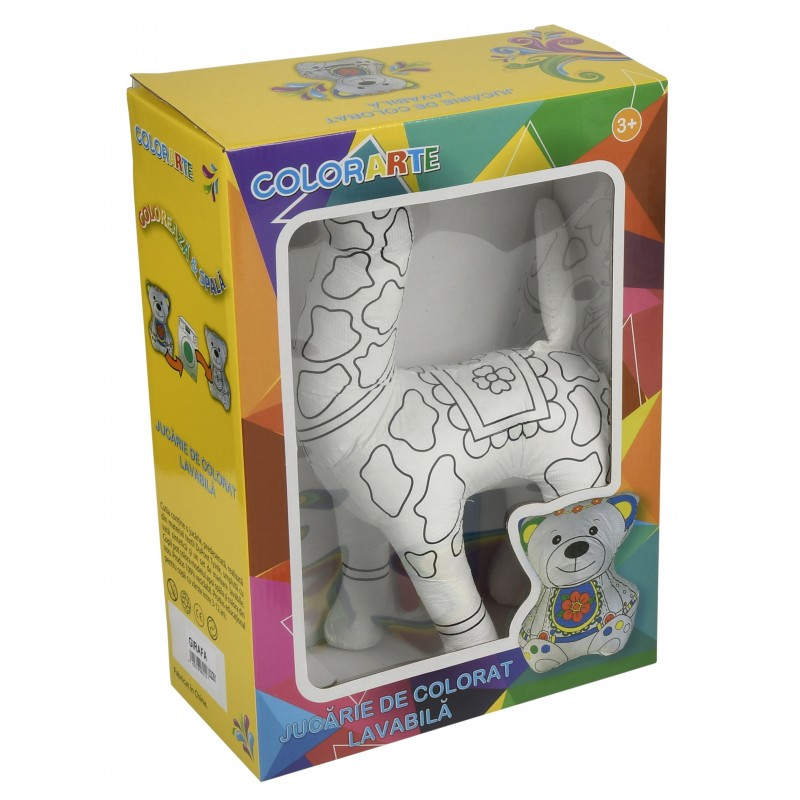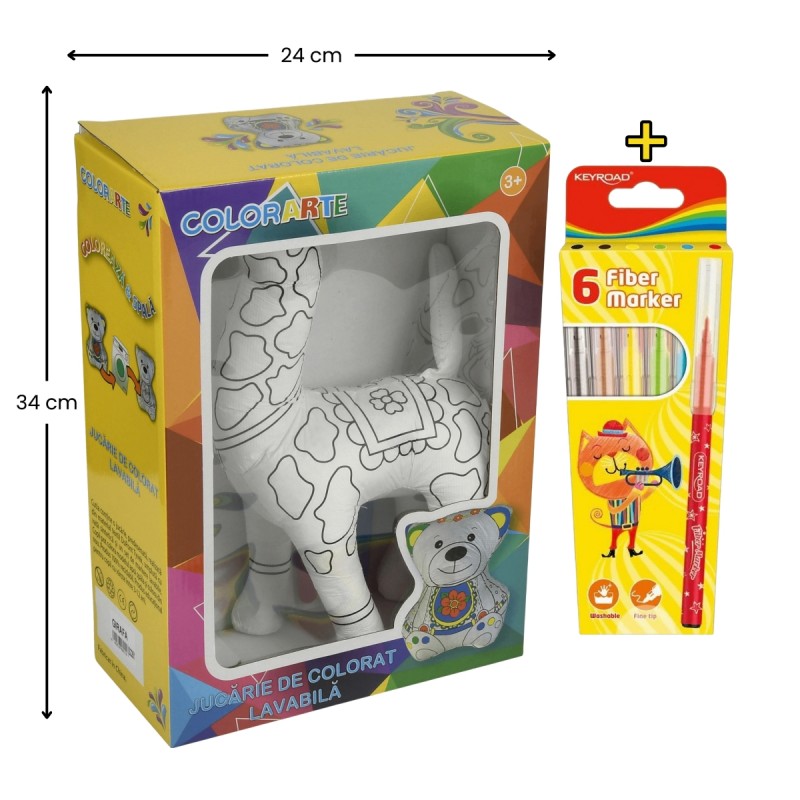 Set Jucarie vatelina pentru colorat lavabila + Carioci Keyroad Washable, 6 culori - 34x24cm - girafa, Colorarte