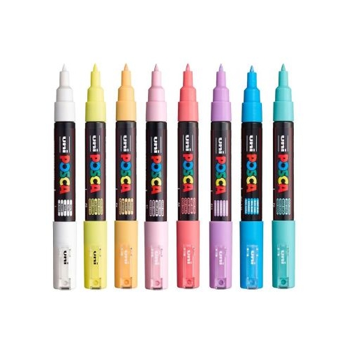 Markere/carioci Posca vandute intr-un pachet cu 8 culori diferite in nuante pastelate roz deschis 51 Roz deschis roz coral 66 Roz Coral lavanda P11 Lavender galben soare P2 Sunshine Yellow caise 26 Cais aquagreen P6 Aqua Green bleu deschis 57 Light Blue si alb 1 White . Markerele Posca au un varf foarte ingust conic. Acest marker este potrivit pentru pentru copii si incepatori dar si adultii si experimentati pot colora foarte precis cu el. Varful este suficient de ingust incat sa poata fi folosit si pentru scris. Proprietati Bazat pe apa Inodor Poate fi folosit pe toate suprafetele lemn textil sticla ceramica hartie plastic metal piatra si panza Potrivit pentru un efect de acuarela Mixabil Poate fi suprapus Uscare rapida Foarte rezistent la UV Inainte de utilizare agitati bine markerul in sus si in jos astfel incat culoarea din interior sa fie amestecata si markerul sa vopseasca cu o culoare uniforma. Apasati varful in jos de cateva ori pana cand este imbibat de culoare si sunteti gata sa va dezlantuiti creativitatea. Daca varful se usuca il poti inmuia in apa si apoi este din nou ca nou.